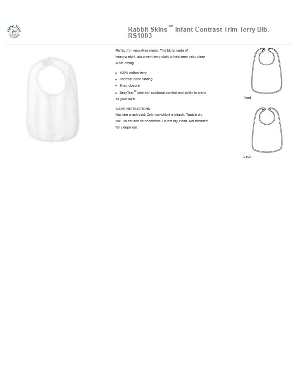 Perfect for mess-free meals. This bib is made of heavyweight, absorbent terry cloth to help keep baby clean while eating.